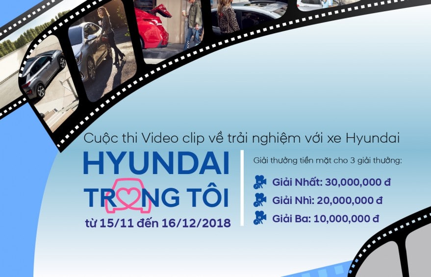 HYUNDAI TRONG TÔI – SỐNG LẠI NHỮNG KHOẢNH KHẮC YÊU THƯƠNG Ngày thu nắng vàng, gác lại những bề bộn cuộc sống, hãy cùng sống lại những cảm xúc yêu thương nâng niu như ngày đầu đón nhận xế yêu Hyundai – người bạn đồng hành trên mọi nẻo đường…bằng cách ghi lại khoảnh khắc trải nghiệm cùng xe Hyundai và đăng ký tham gia cuộc thi Video Clip. === Thể lệ chương trình: 1. Tên chương trình: “Hyundai trong tôi” 2. Đối tượng tham gia: Tất cả các Khách hàng đang sở hữu xe Hyundai trên toàn hệ thống Việt Nam nhưng không bao gồm: Nhân viên của Hyundai Thành Công (HTC) và các Đại lý ủy quyền trong hệ thống. 3. Ban tổ chức: Công ty CP Hyundai Thành Công Việt Nam. 4. Cơ cấu giải thưởng: Cơ
