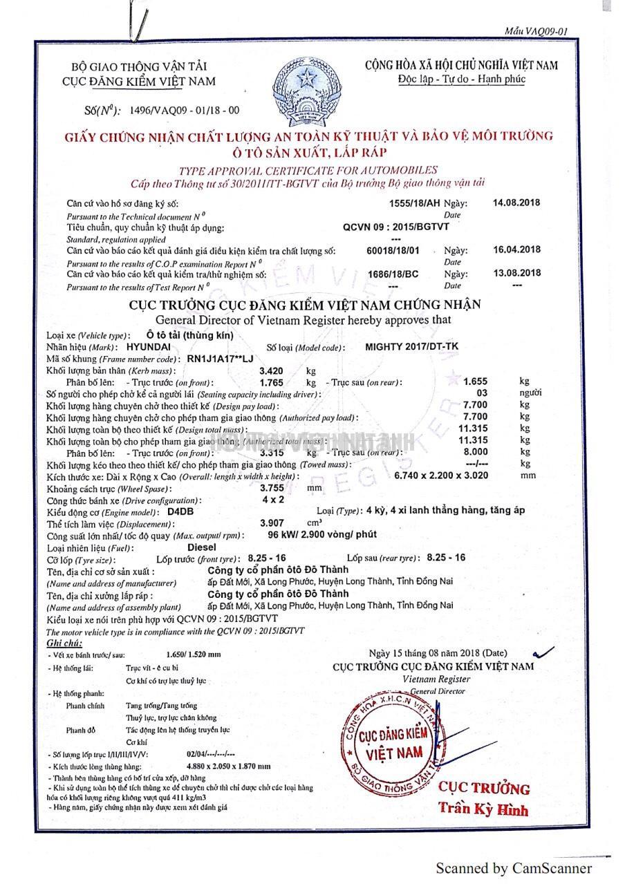 Thông số kỹ thuật xe New Mighty 2017 thùng kín