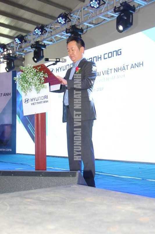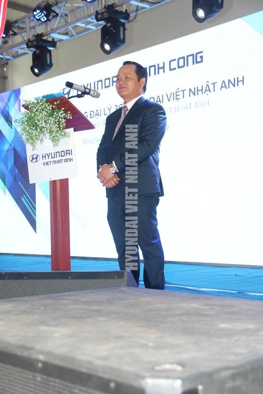 Thay mặt công ty cổ phần ô tô Việt Nhật Anh, tôi nồng nhiệt chào đón Quý vị quan khách đã đến tham dự lễ khai trương Hyundai Việt Nhật Anh 3S, sự góp mặt của quý vị là niềm động viên to lớn cho chúng tôi trên chặng đường sắp tới.