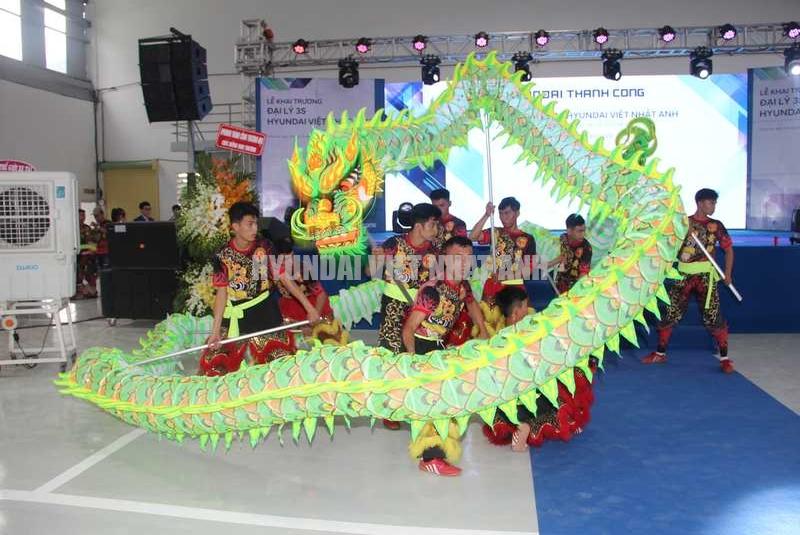 Sau phẩn chào đón quan khách đến tham dự, là màn trình diễn đẹp mặt lân - rồng, 2 con vật đem lại may mắn và cát tường theo phong tục.