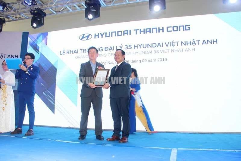 Ngay sau bài phát biểu của ngài Kim Mun Jong, là phần nghi thức trao chứng nhận cho đại lý Hyundai Việt Nhật Anh và cắt băng khánh thành